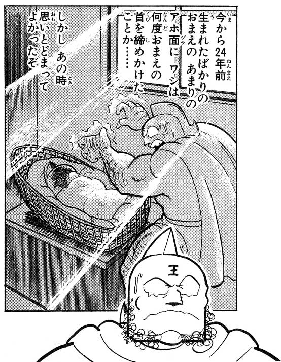 ・キン肉マンにキン肉族三大奥義三大奥義などの重要な事を全く教えていなかった(しかも、それを棚上げして「そんな事も知らんのか!」と怒鳴る アニメ版では「あんたが教えてないことを私が知るわけないだろ!」と返される)