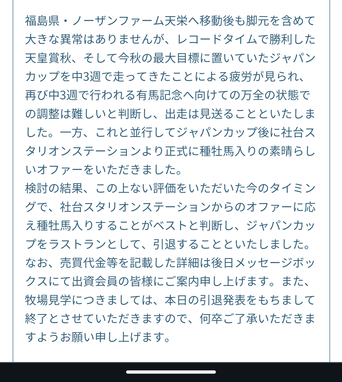 ネトケのニュースで有馬も視野にあったけどコンディション的に無理みたいなことになってたから割とギリギリでだったんだろう