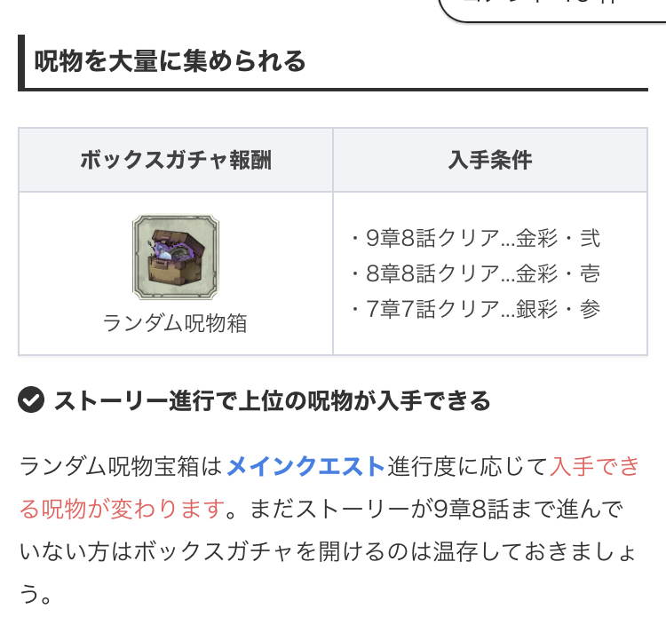 ランダム呪物ボックスはストーリー進行でレア度が上がるって小耳に挟んだんだけど把握してる人いる?