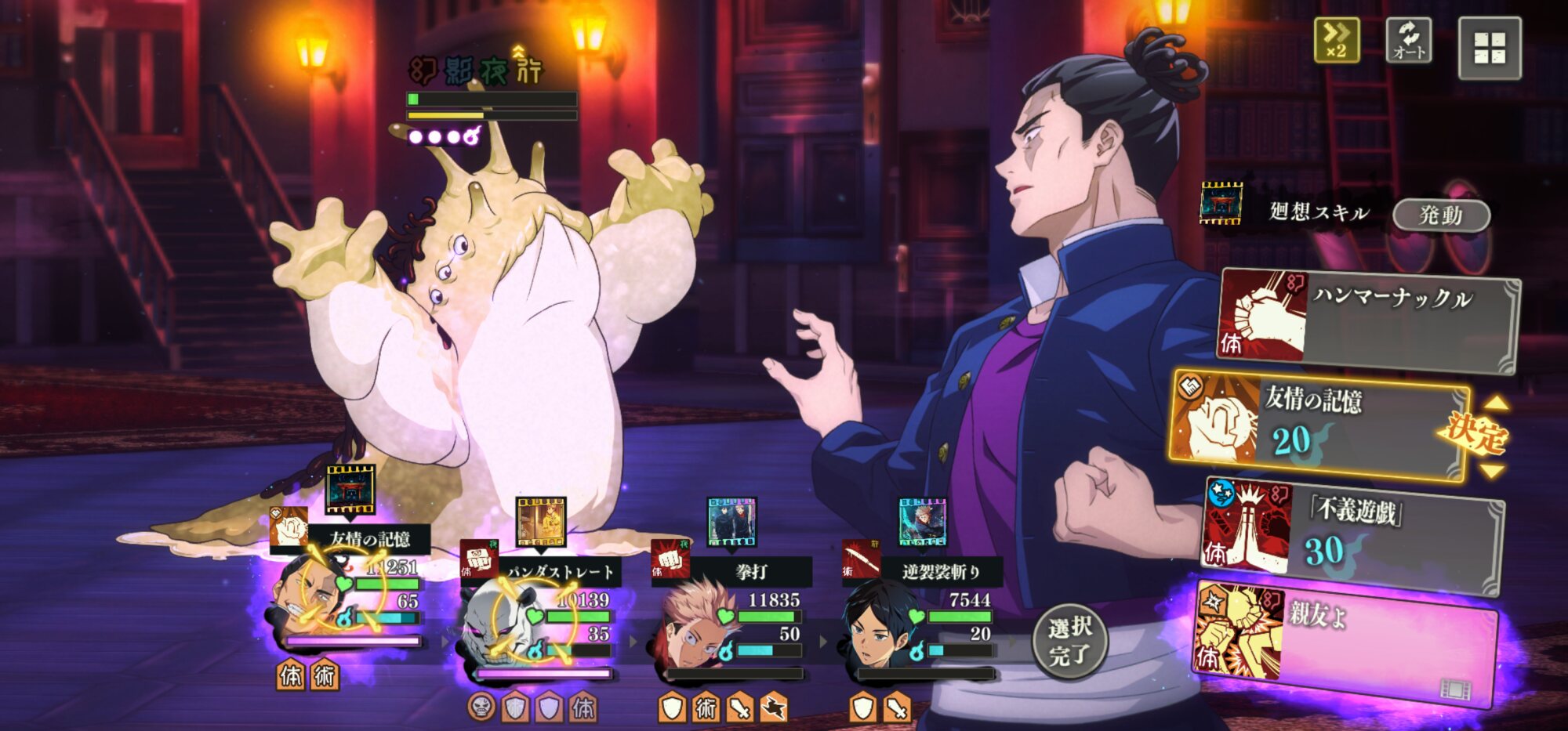 2ターン目:五条は通常攻撃(スキル1)に変更、それ以外は同じ