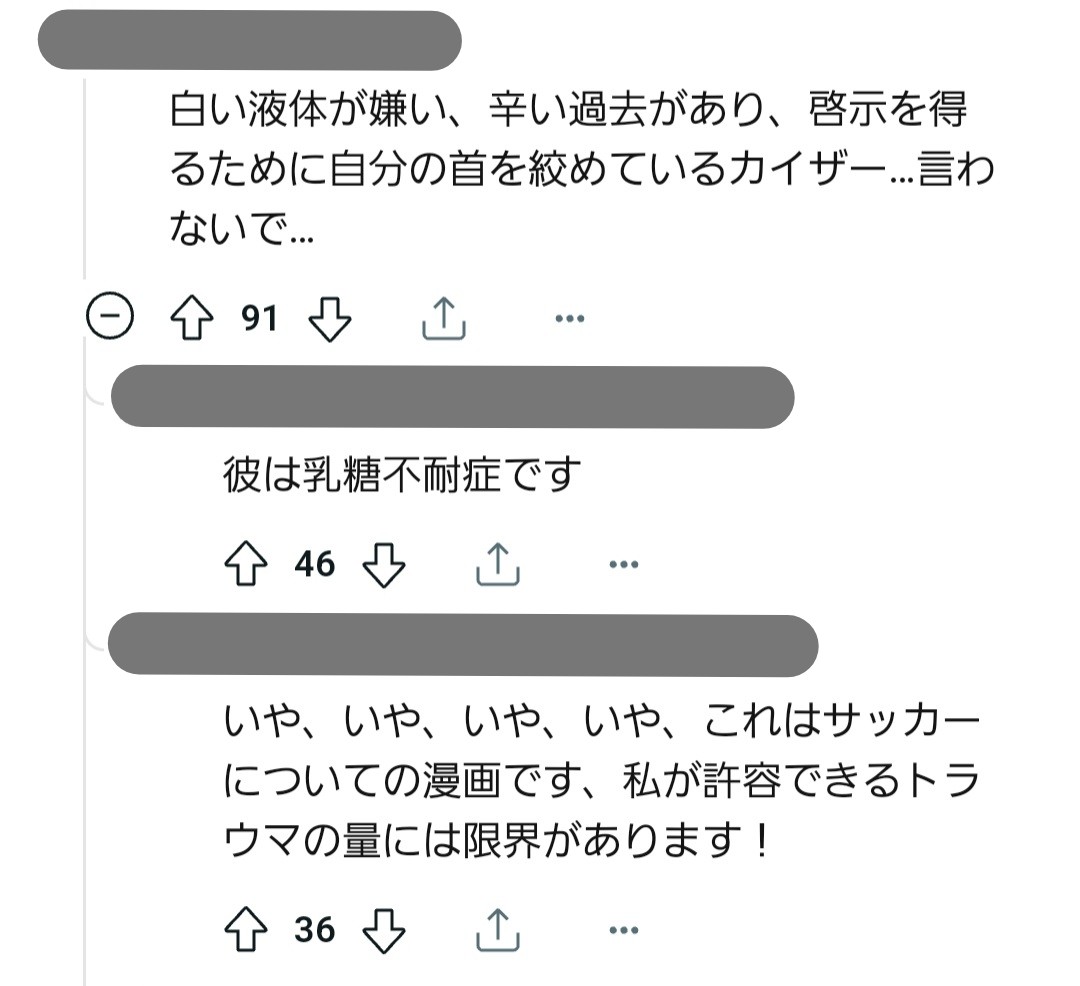 カイザーが普通のスペックの他人を恋人にするぶんには全然いいしそれでカイザーが幸せなら全然祝福するけど、『中途半端』な『自分』が並ぶとなんか…「ぅ゙オ゙オ゙オ゙オ゙…貴様何を調子に乗っているタヒね…タヒんで詫びろ…全世界に…(???)」って気になってくるんだ…