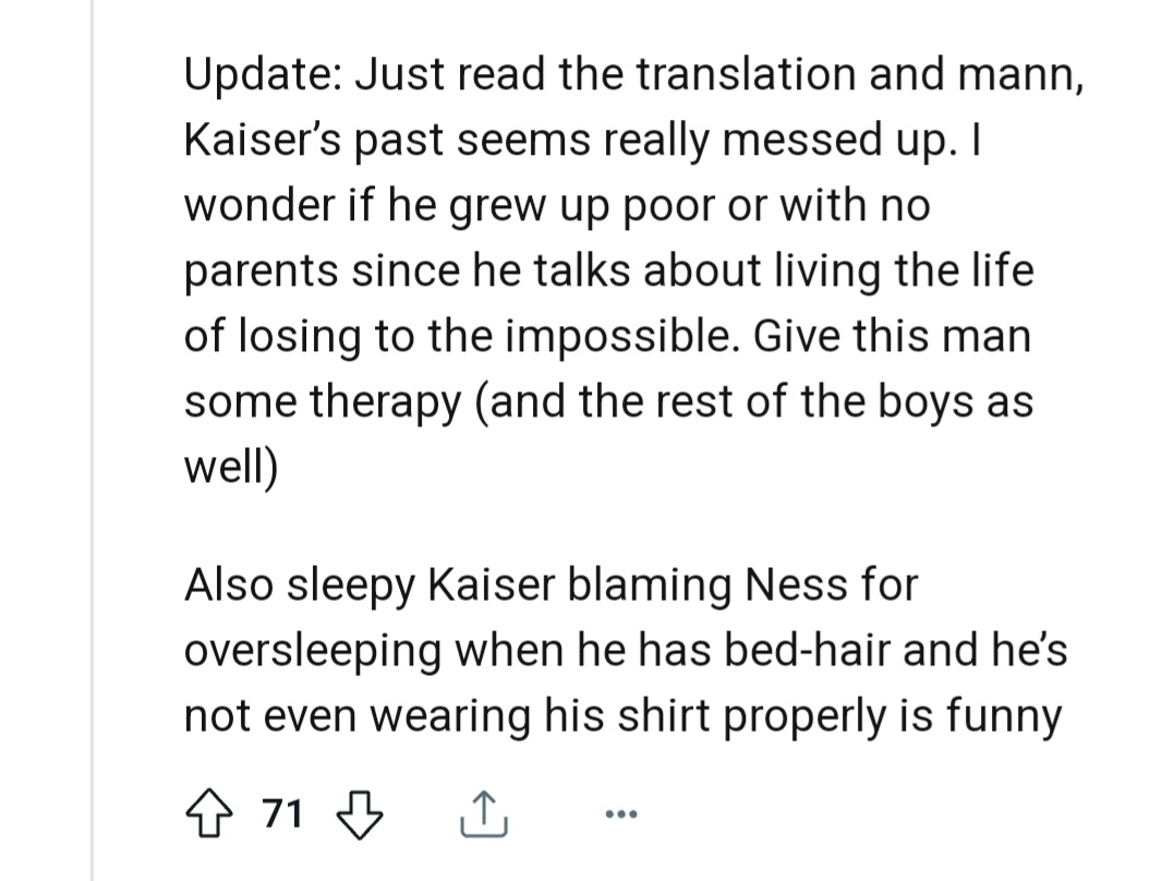 推しには幸せになって欲しいが幸せになるまでの過程でならどんな曇らせ激重過去も盛っていいと思ってるので正直今週のカイザーは……ボロン…