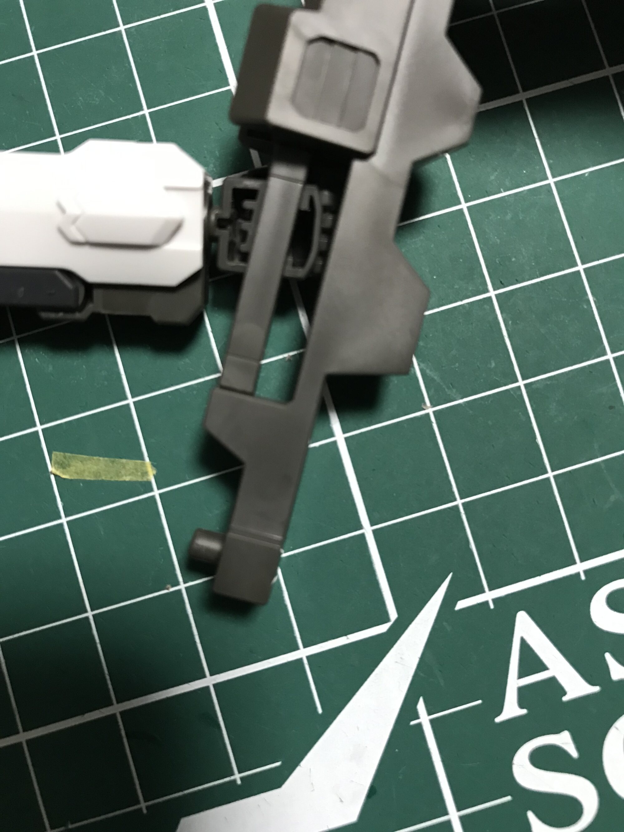 KPS素材のランナータグからc字リング削り出して持ち手にハメる。拳の下あたりの位置にハメればグラグラしなくなるんじゃないかな
