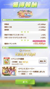 URA1周が約20分、TP消費2倍で稼げるポイントが約5万