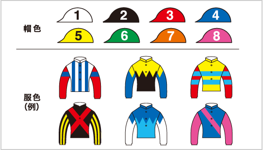 1.白・2.黒・3.赤・4.青・5.黄・6.緑・7.桃・8.水色・9.紫・10.薄紫・11.鼠・12.海老・13.茶