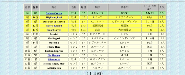 セクレタリアトステークス、香港ヴァーズ、キングジョージ6世&クイーンエリザベスステークス、ブリーダーズカップ・ターフ、コロネーションカップ、プリンスオブウェールズステークス、香港ヴァーズのG17勝に加えて凱旋門2着とかもあるのがエグいよなハイランドリール