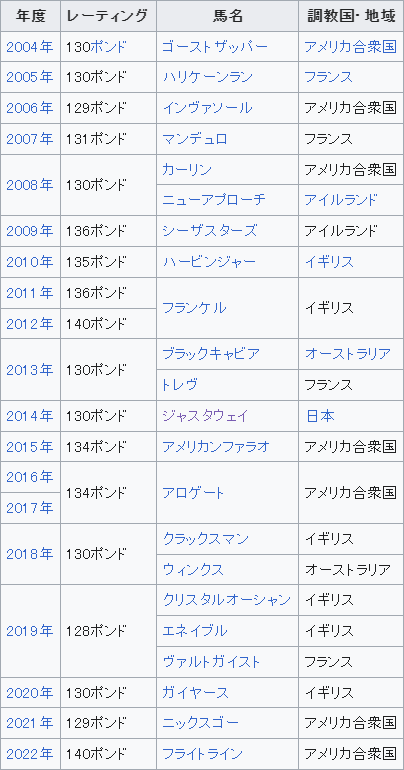 フランケル→マイル・インターミディエイト両方でのレーティング140(カンスト)。
