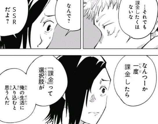 こんなこと言ってた虎杖が真人との戦いを経て重課金勢になってしまったシーンは涙無しには見られないよね