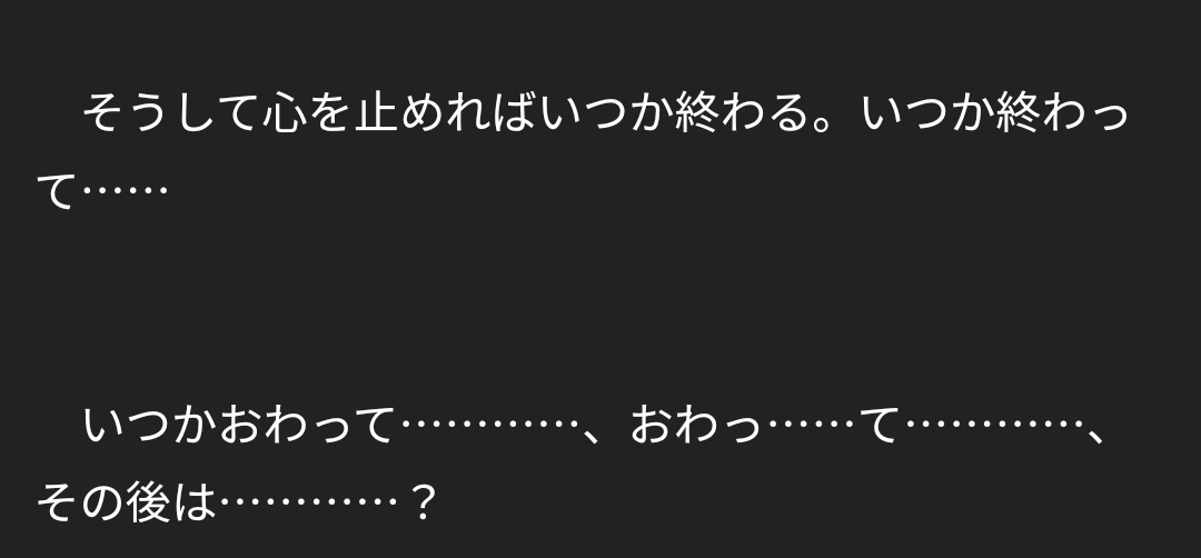続きを待ちわびている自分と続きがないことに安堵している相反する自分がいる