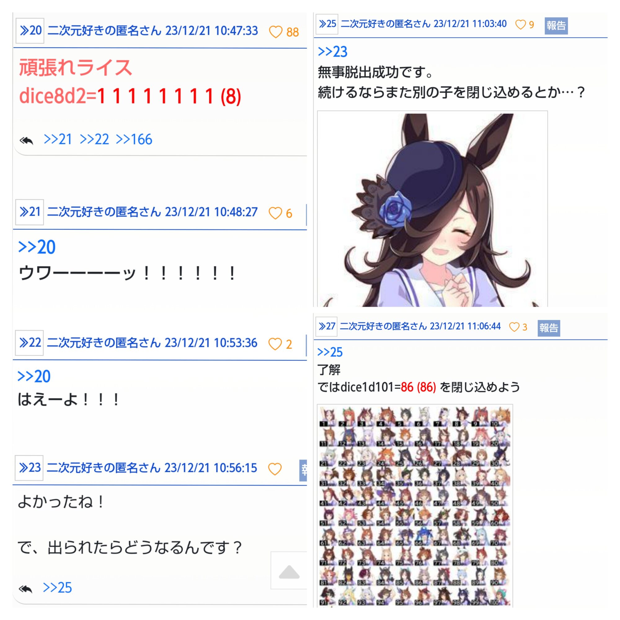 …早く出たいの|あにまん掲示板dice8d2=@1 1 2 2 2 2 1 1 (12)@全部1で脱出成功bbs.animanch.com(スレ主≠前スレ主)