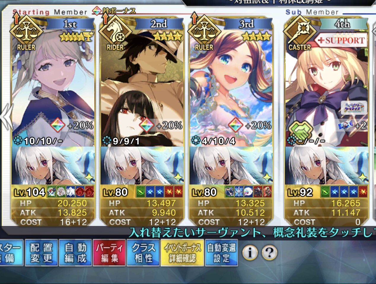 ルーラークラスで攻撃宝具という都合上、重なってないとどうしても火力不足になりがちサポート能力込みでも中途半端になりがちなのがってとこがあると思うらぶ