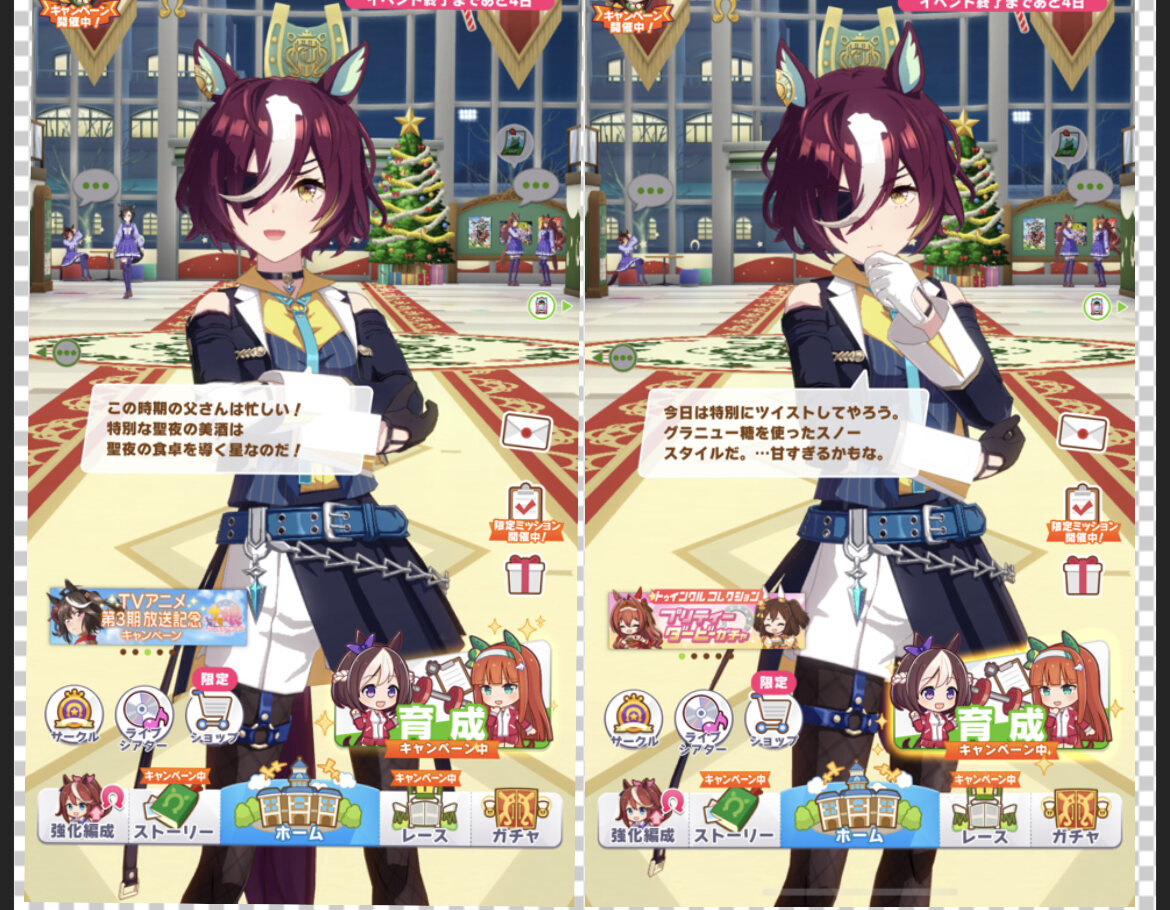 クリスマスイベントの衣装違いはどれが限定ボイスがややこしいのでトレーナーノートで確認しよう