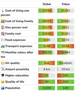 Dubai vs Tokyo comparison: Cost of Living, Prices, SalaryThe cost of living in Dubai is 50% more expensive than in Tokyo. Cities ranked 1596th and 3644th (45 vs 63) in the list of the most expensive cities in the world and ranked 1st and 8th in the United Arab Emirates and Japan, respectively.livingcost.org - 28二次元好きの匿名さん23/12/24(日) 13:30:57