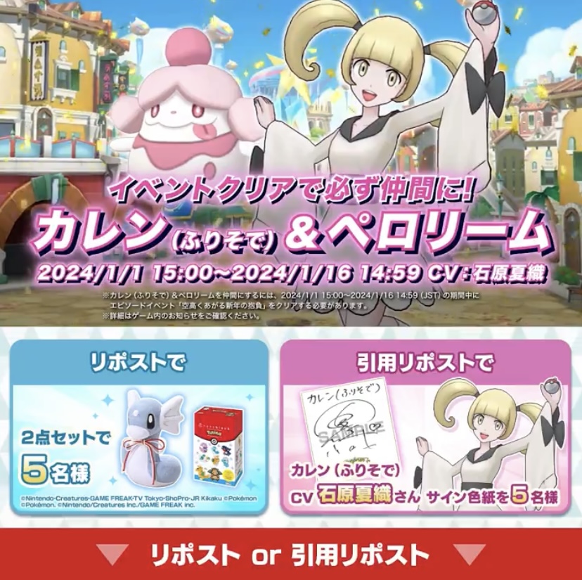 - 37二次元好きの匿名さん23/12/28(木) 00:45:27推しキャラに推しポケだしストーリーも面白くてかわいいの大渋滞だったしコスチュームもかわいいのでCメイちゃん絶対引きたいぜ!