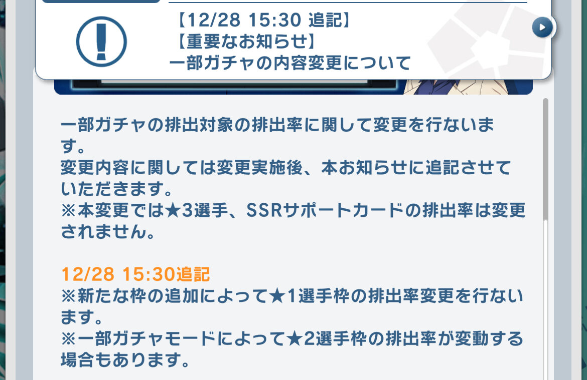 ③リアル選手と同じく1枚だけ配布で残りはガチャ。現実は非常である。 - 19二次元好きの匿名さん23/12/27(水) 13:46:21