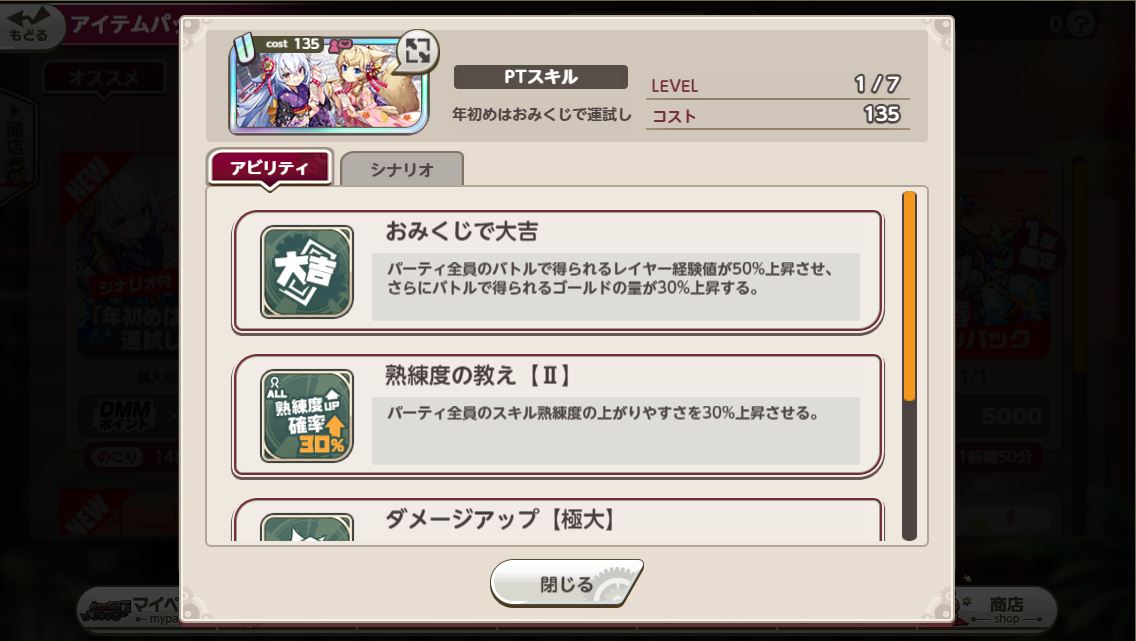 ついにPTスキルにシナリオ付くのはいいけど高くないヨシノちゃん? 性能クソじゃなければ買うけど…