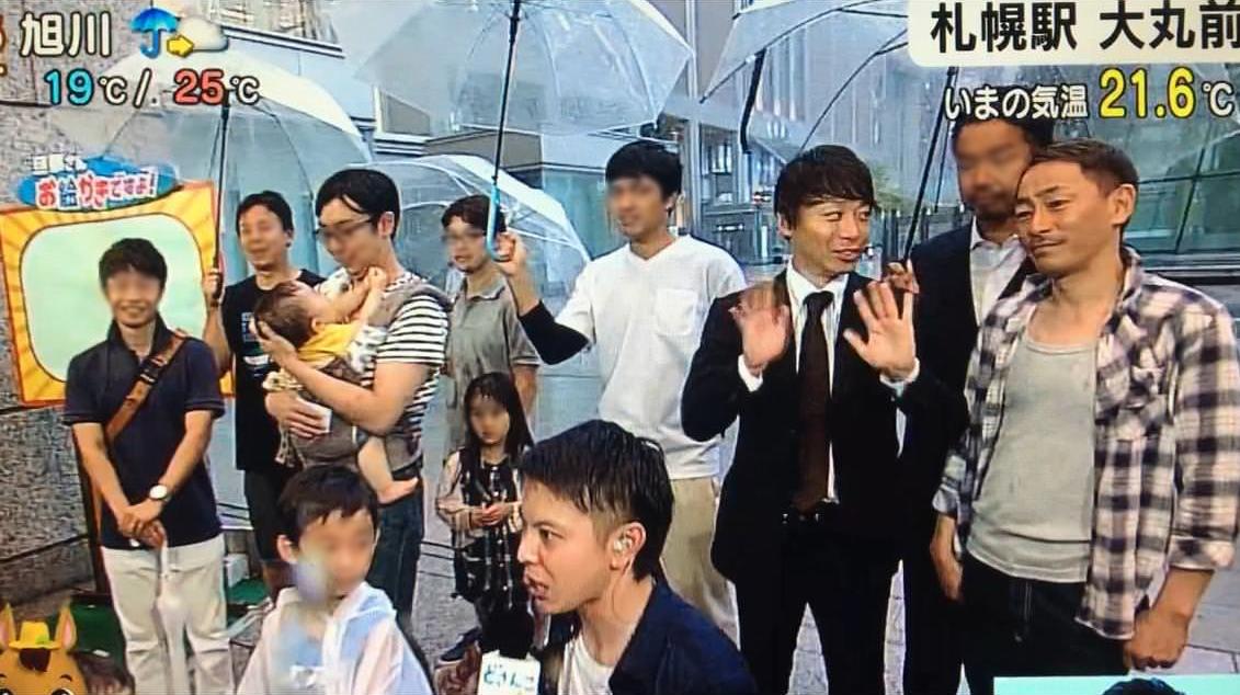 通りすがりの池添謙一さんと勝浦正樹さん、お電話相手の丸山元気さんだもん