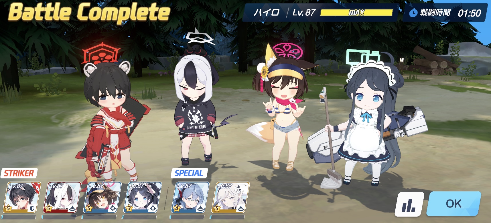 ボーナスはアイテムごとに手動クリアした中の最大値でそれ以降固定されるから各ドロップごとにボーナスキャラかき集めて1回ずつクリアしてから最大戦力で星3クリアして掃討周回って感じスね