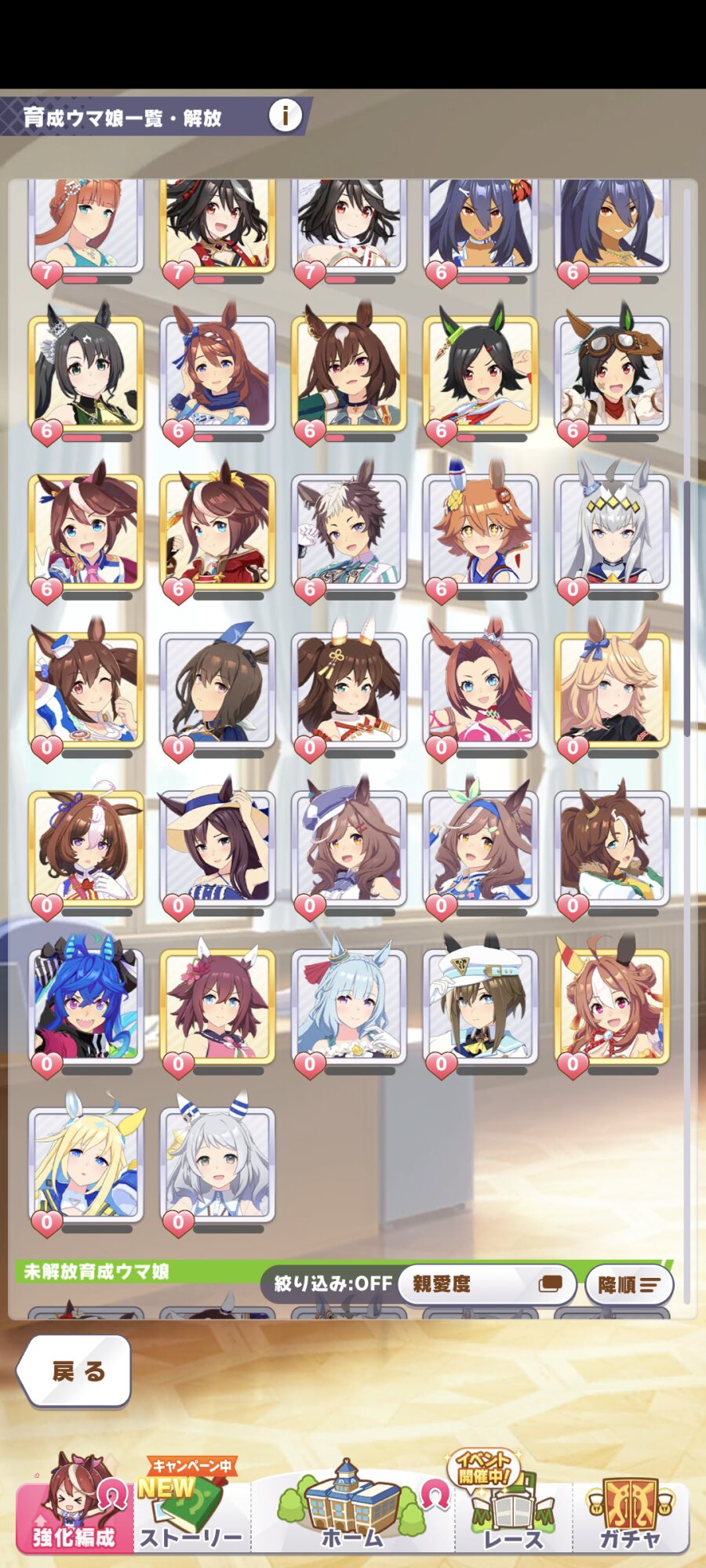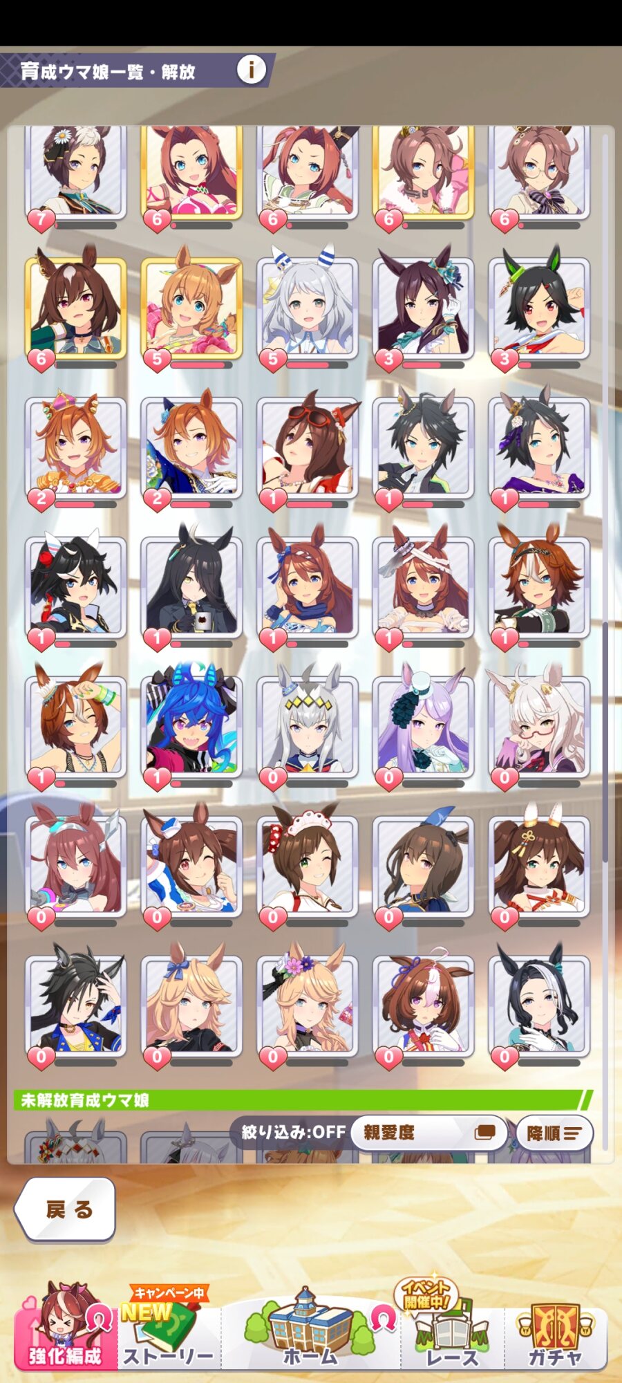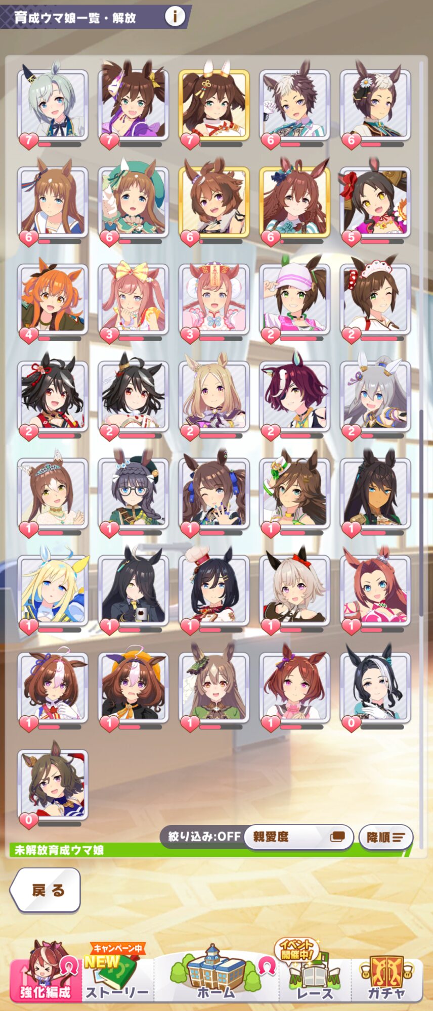 ラークで競技場育成して親愛度稼いだまま放置の子が結構いる