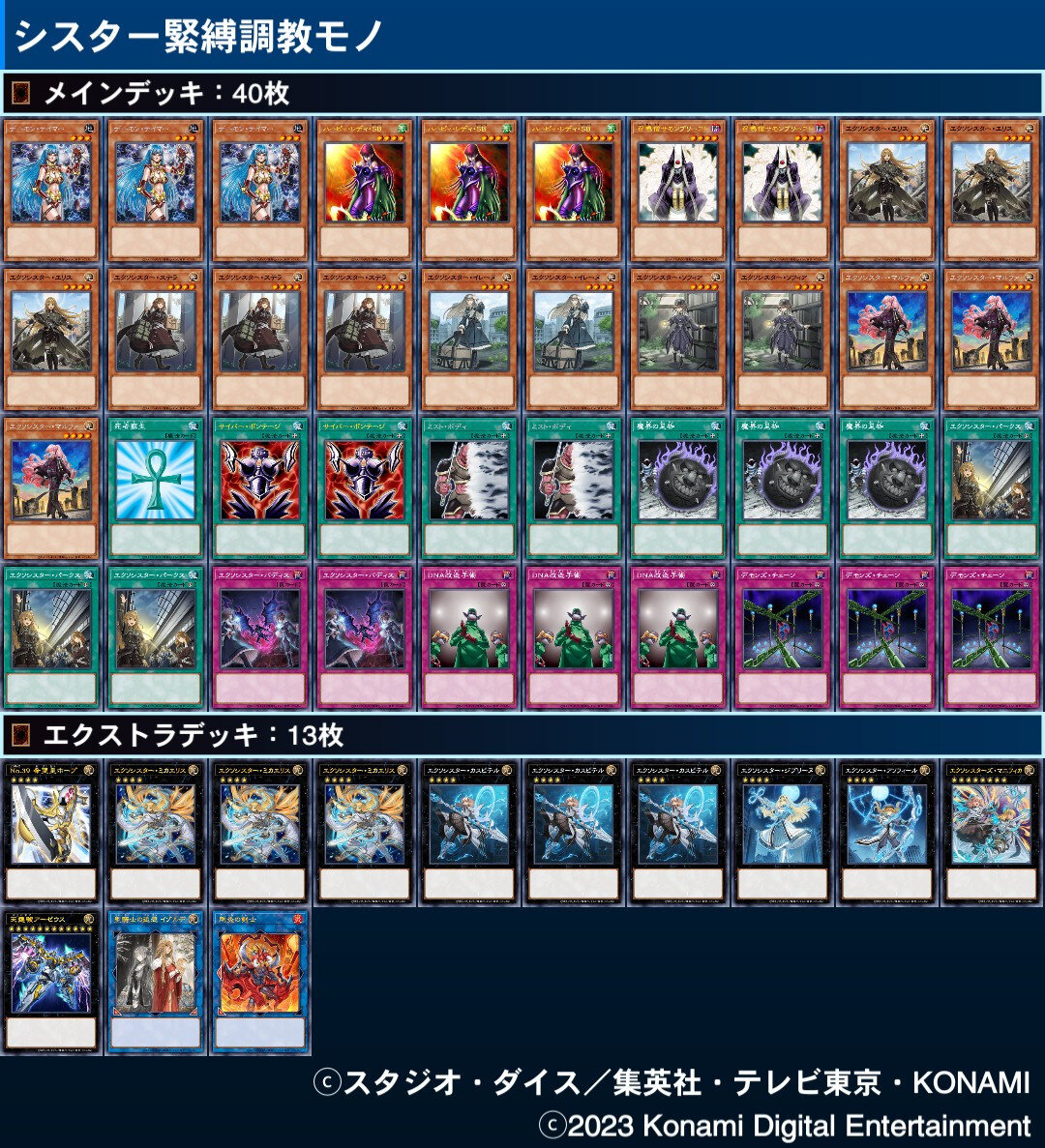 個人的には並べたエクソシスター達をセルフデモチェや足枷で拘束してその横にデーモンテイマー添えるデッキが妄想の余地あって面白いなってなりました。
