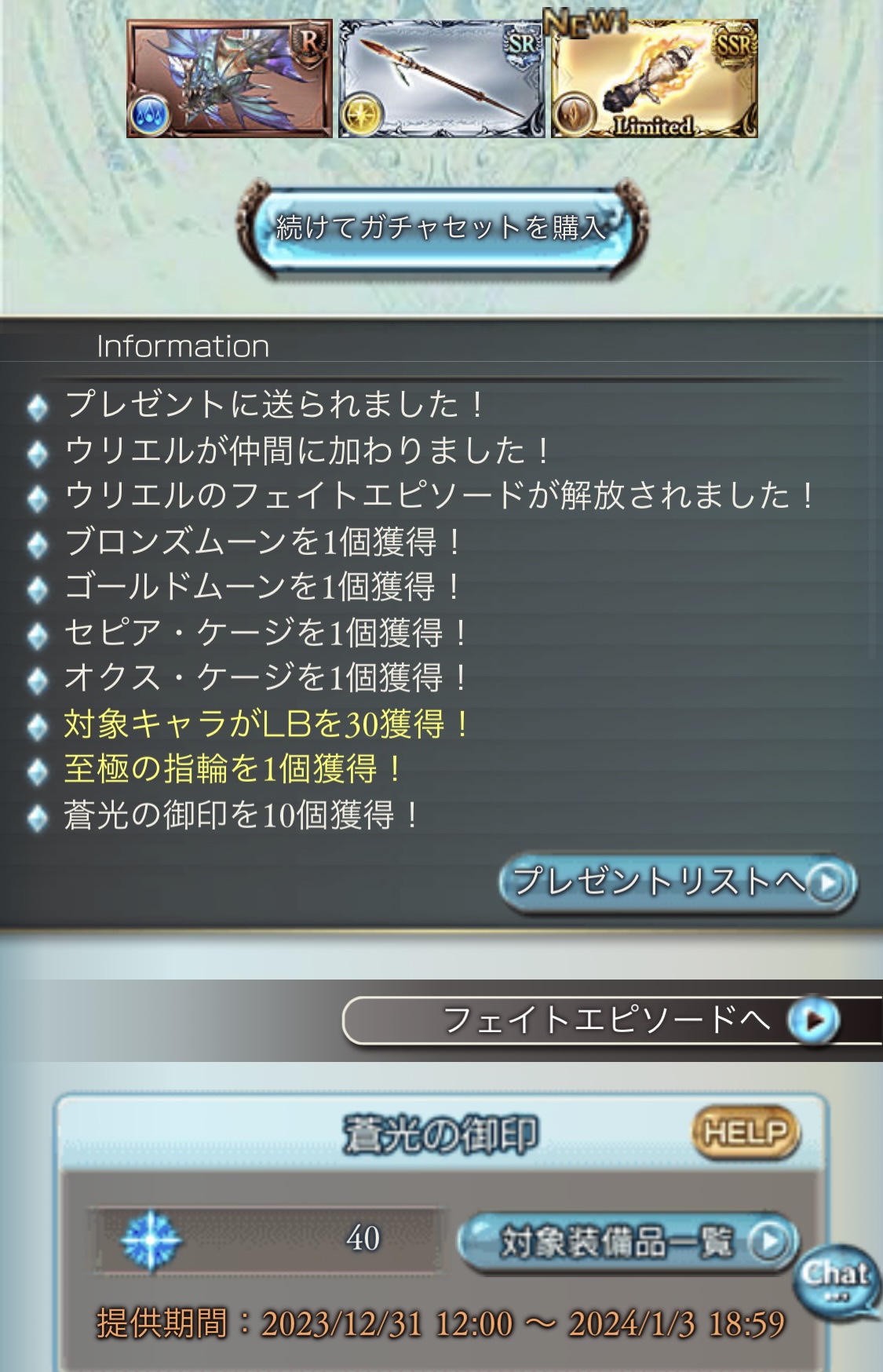 年末のガチャっていつも月末の31日に更新されるんですよ