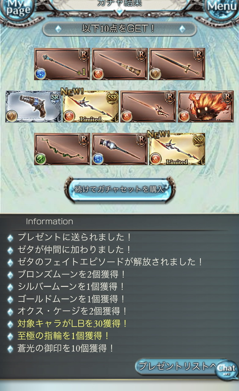 本当は20連だったんだけど、10連回したらリミゼタが出たんよ