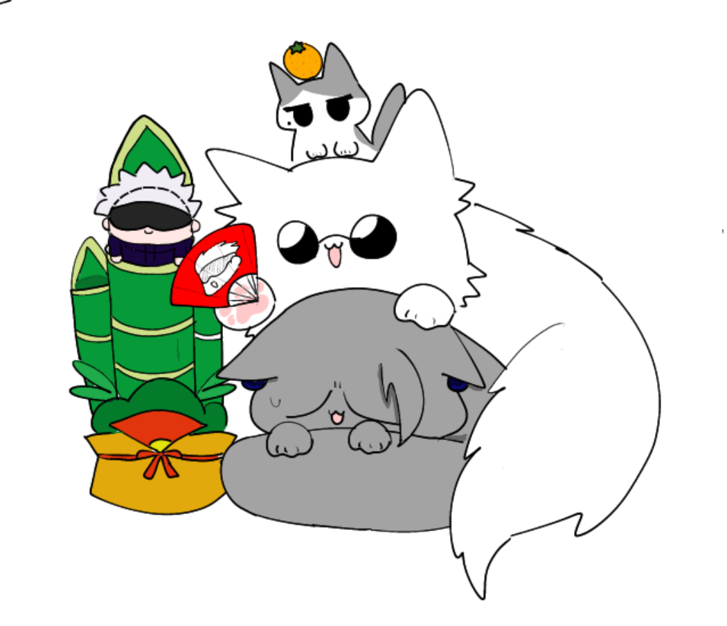 クリスマスに続いて新年の夏油猫だー
