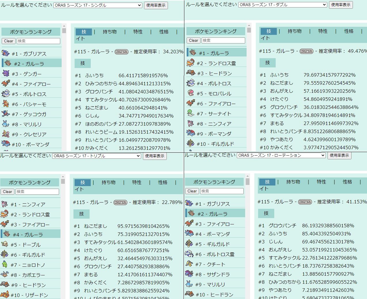 シングルとダブルでポケモンの傾向違う部分があるから飽きたなら別のルールに行くのもあり