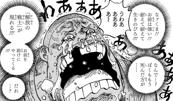 おそらく理性のブレーキがなかったらいつでも天竜人を皆○しにしてしまいそうになるんだろうけど