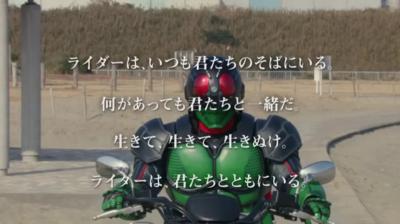 実際に被災地で仮面ライダー役の俳優が子供に言われた言葉だったっスかね