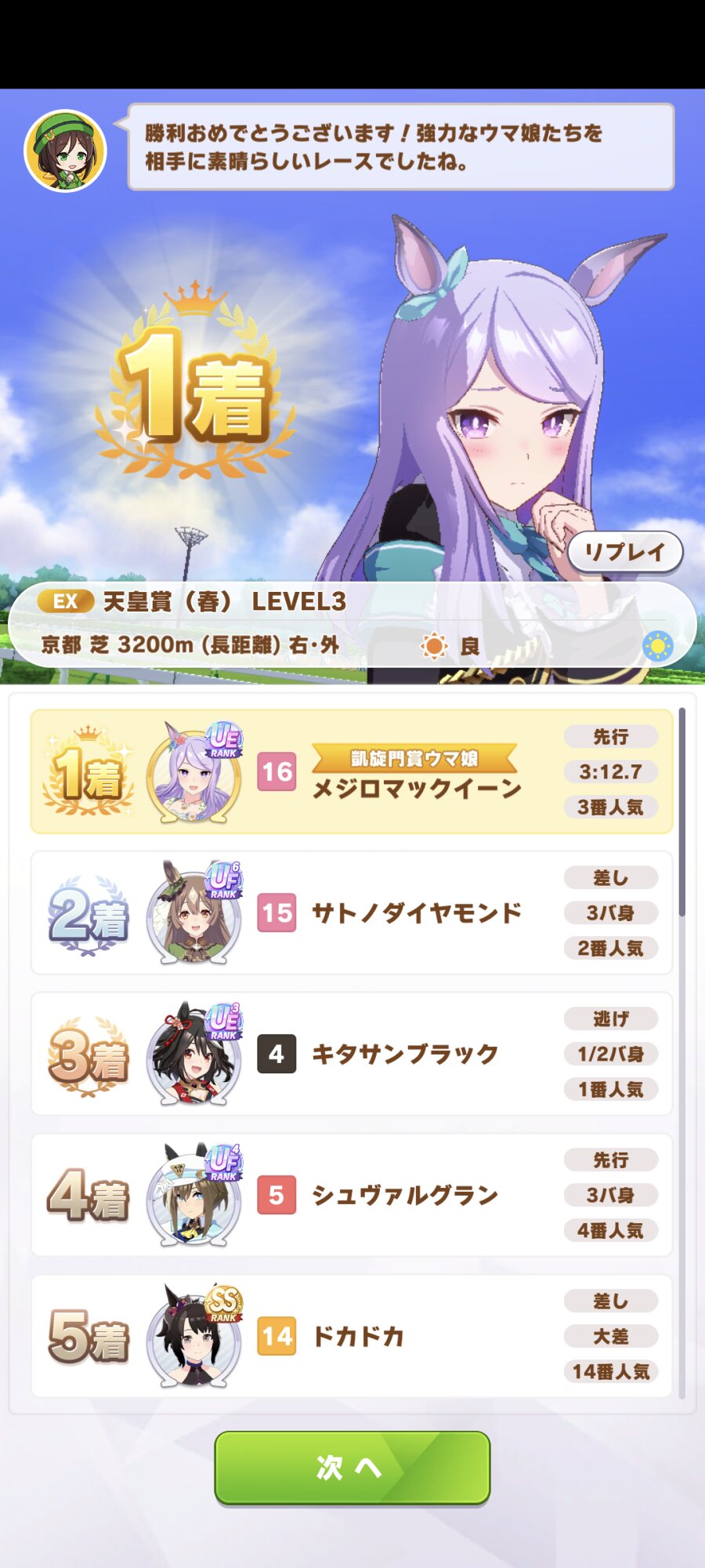 有馬記念Lv3も春天Lv3も纏めて水着マックちゃんが平らげて行ったわ