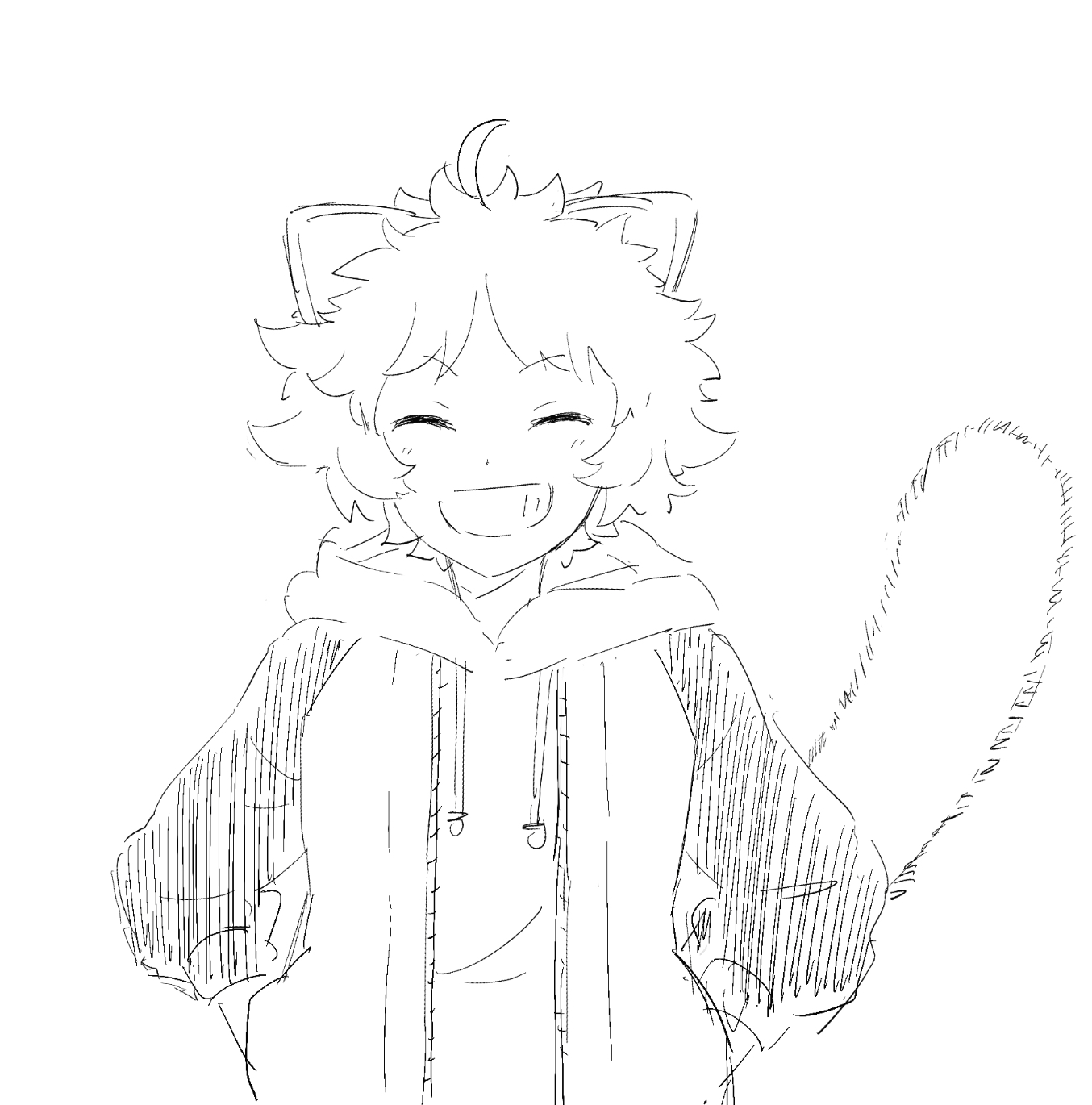 ケモ耳尻尾ギザ歯赤目の笑っている子供