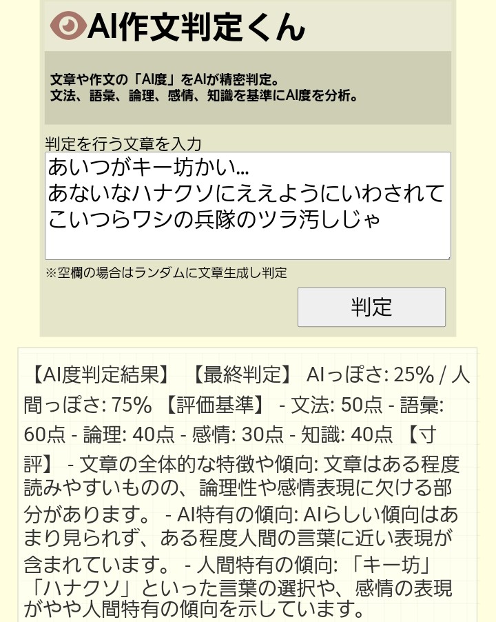 あの…これ何の文章入れてもAI度高くなるんスけど…