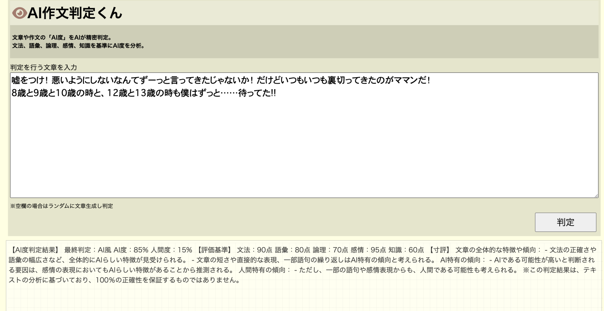 もしかしてこれはある程度レベルが高い文章なら全部AI判定なんじゃないスか?