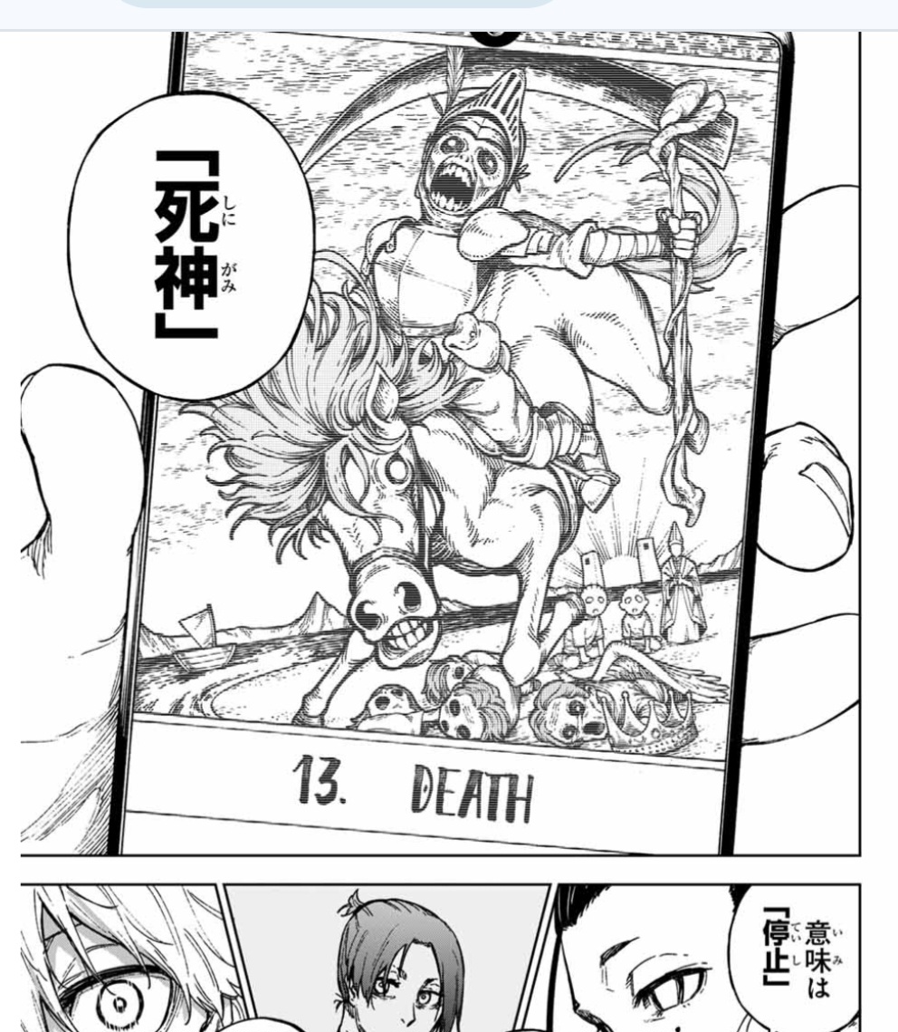タロット自体の意味としては転換点みたいな意味もあるから新章開幕としての「死神」もあると思うわ
