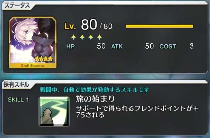 アペンドスキル2は最大までレベル上げると最初からNPが20%チャージされるようになるからなにかと便利よ。ただ、高レアのコインは貴重なので悔いのない使い方をするように - 8124/01/11(木) 09:08:37