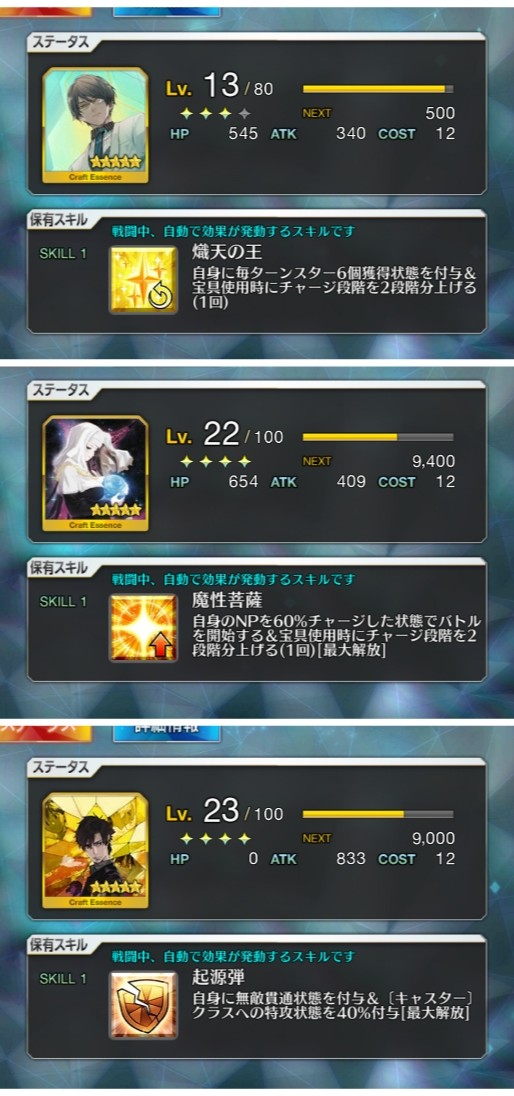特に何も考えずに宝具使ったり、スキル使ったりしてるからいつもお世話になってるサーヴァント達のだけは確認しておく
