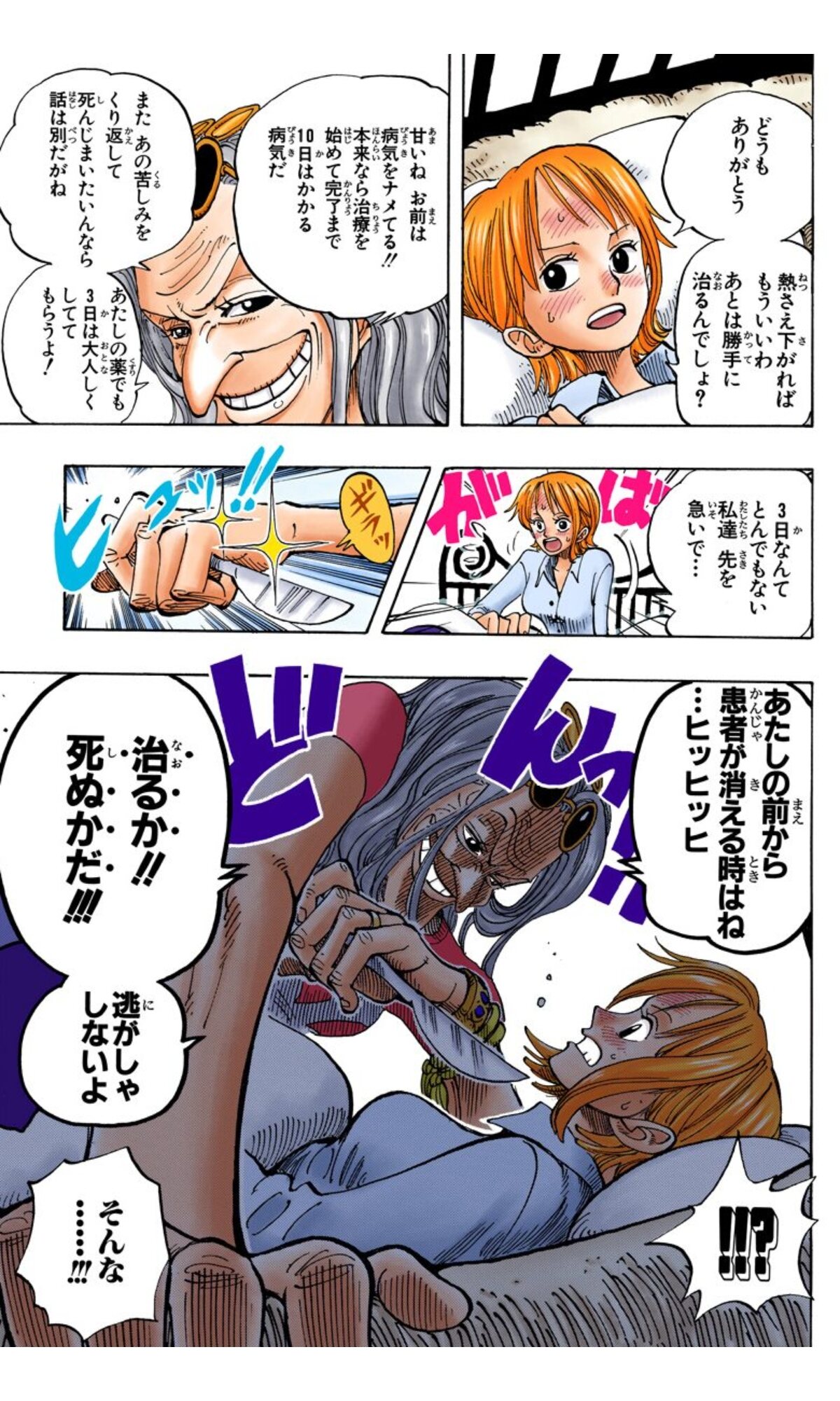 隣で同じくアイスバーグさんの話を聞いていたナミが少し驚いて微笑んだ後、気合いを入れるように婦長の背を叩いて「助けていいとわかったら~」の名言