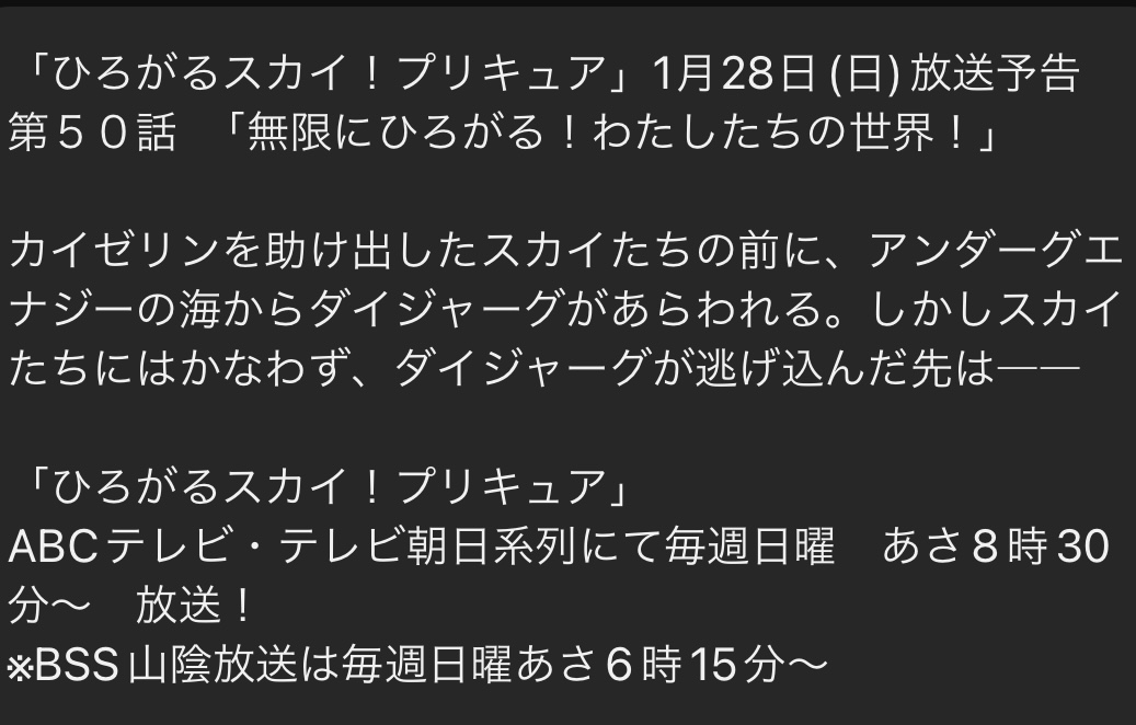 プリキュアが闘ってる姿が空に投影されてるとか? - 179二次元好きの匿名さん24/01/21(日) 16:17:33