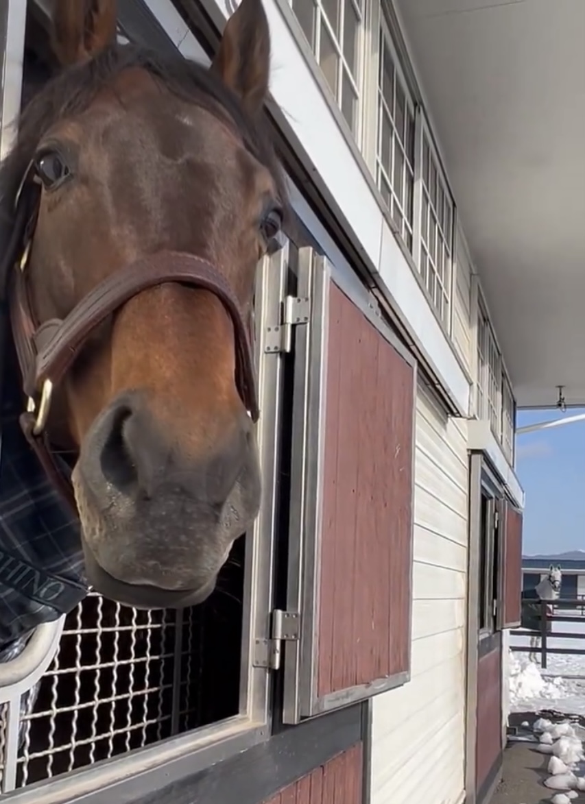 馬は知らない生き物が来るとだいたい野次馬しにいくいきものだから新人はとりあえずガン見される