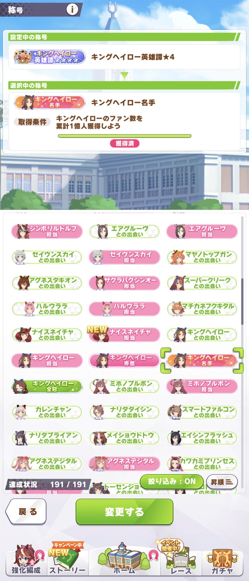 まだ推しが実装されてから一回しかLOH来てないから全冠称号から変えるか悩むんだよなぁ