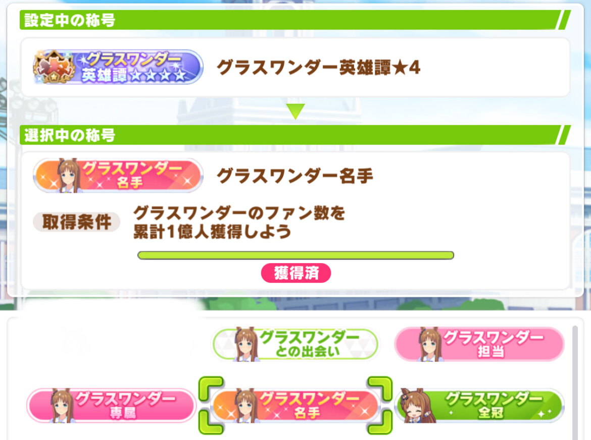推しの名手を数日で取り終わって物足りなかったから5億とか10億まで称号用意して欲しい(強欲)