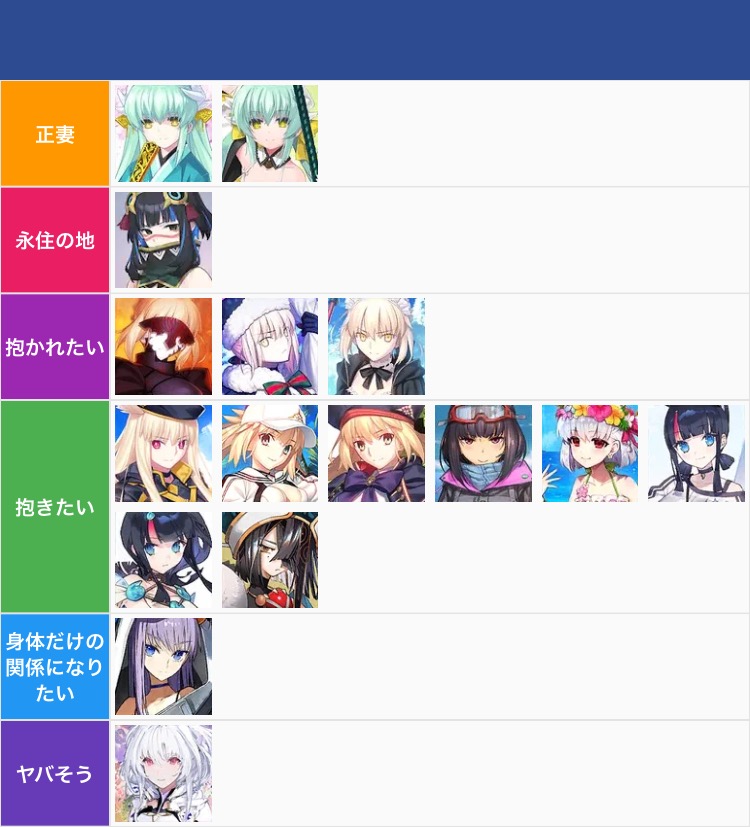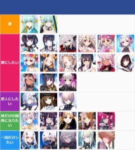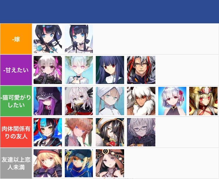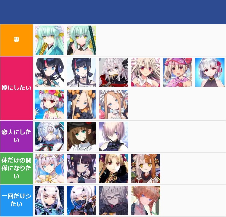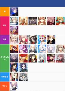 あ、よかったら他の人も自分の好みTier貼っていってください