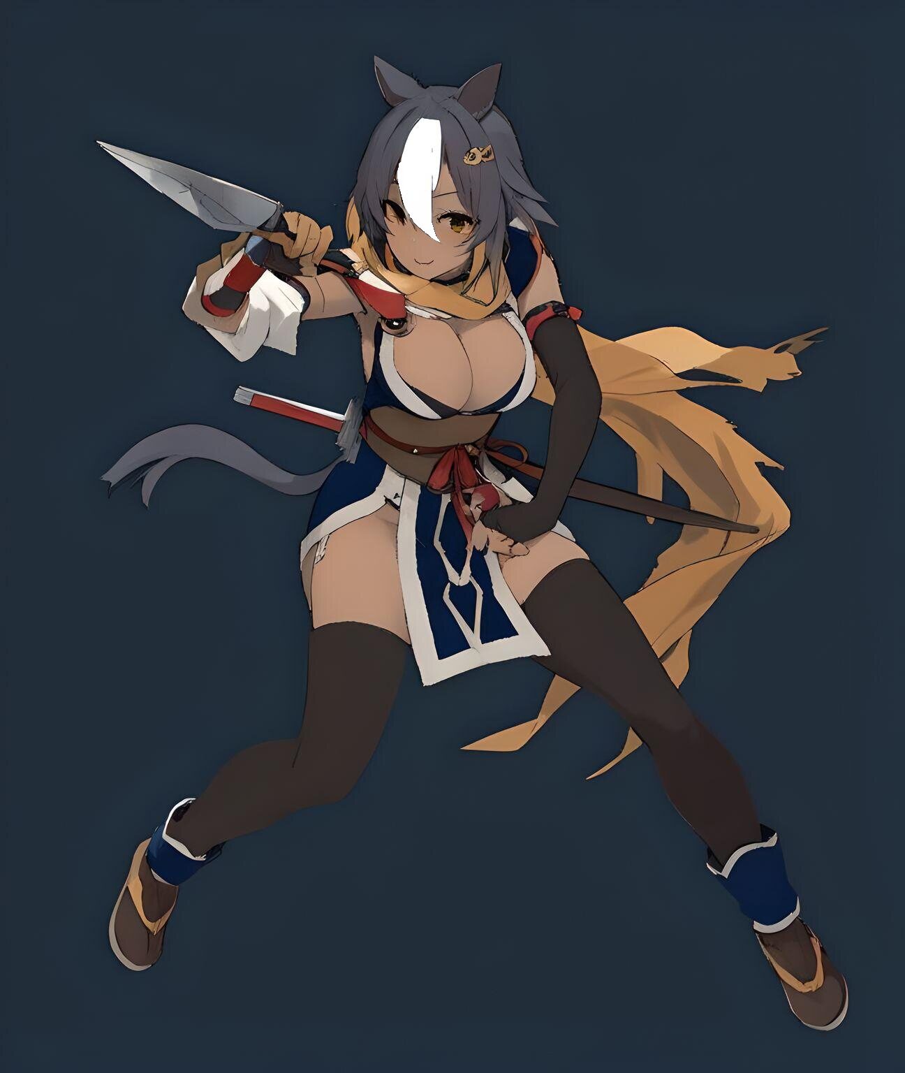 夜空めいたブルーのニンジャ装束に身を包みクナイダートを構える様はまごう事無きニンジャであり、そのバストは豊満であった。