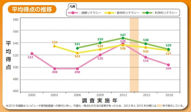 このグラフ2018年までなんでちょっとアレだが実はこのあと2020年〜2023年にかけてまた全体的に学力が向上して一応学力調査してる国の中では3位になるくらい回復してる