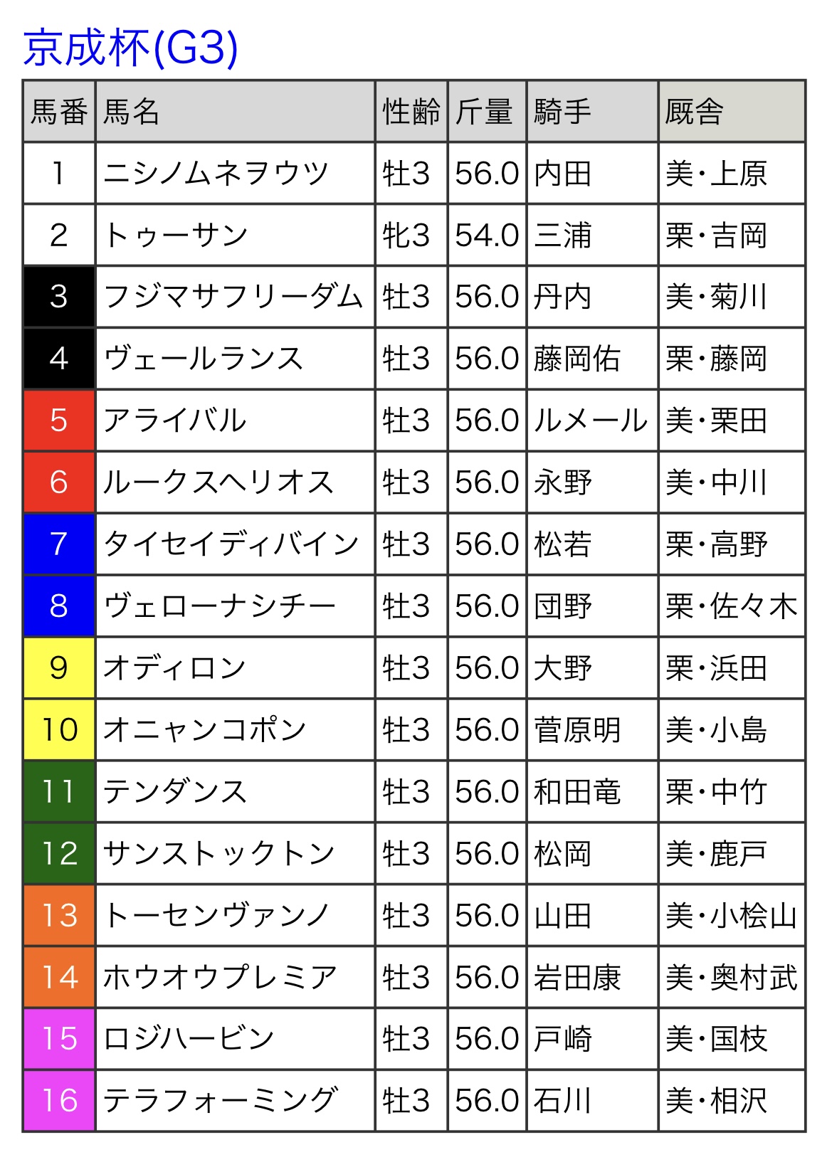 1/16(日)G3 京成杯(中山芝2000m・3歳)