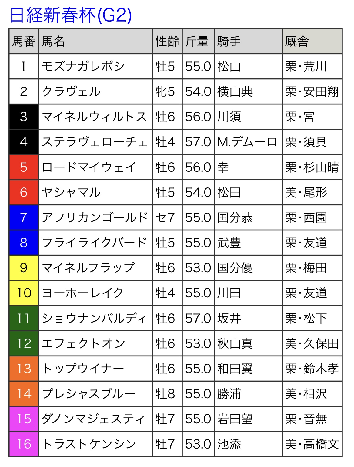 - 12枠順確定22/01/14(金) 10:50:25