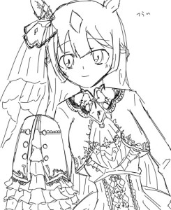 この娘のFAは、勝負服を描いていると、絵師が落っこちてしまいます。
