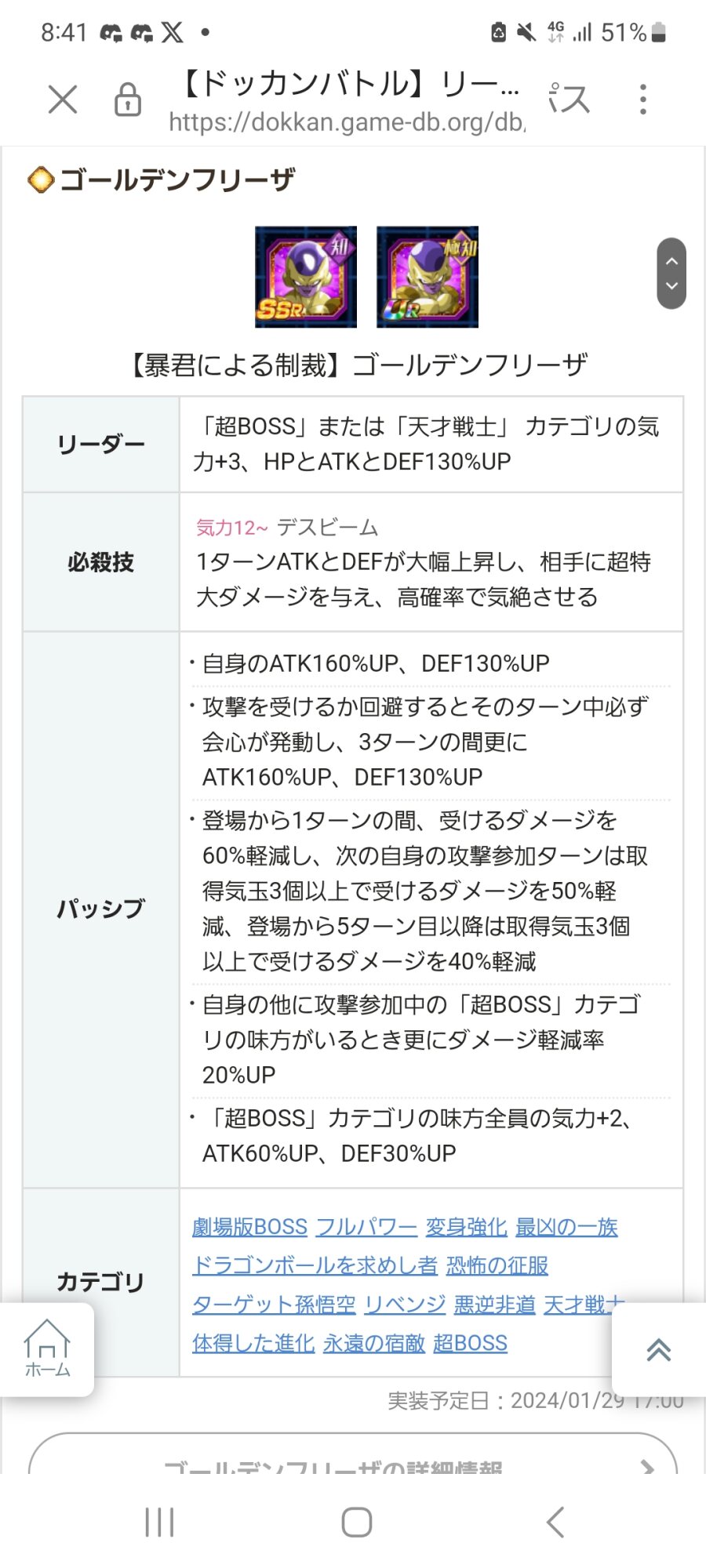 なんなら最初の20連でクウラ2、5周年ゴジータ1引いた以外フェス限出てないんだよね辛くない? - 178二次元好きの匿名さん24/01/29(月) 16:00:52