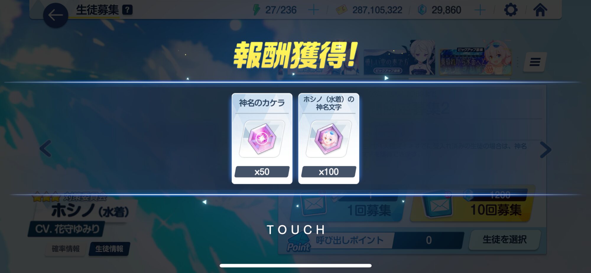 60連で通常ホシノ、ウイ、ドヒナが出たあ~~~っ